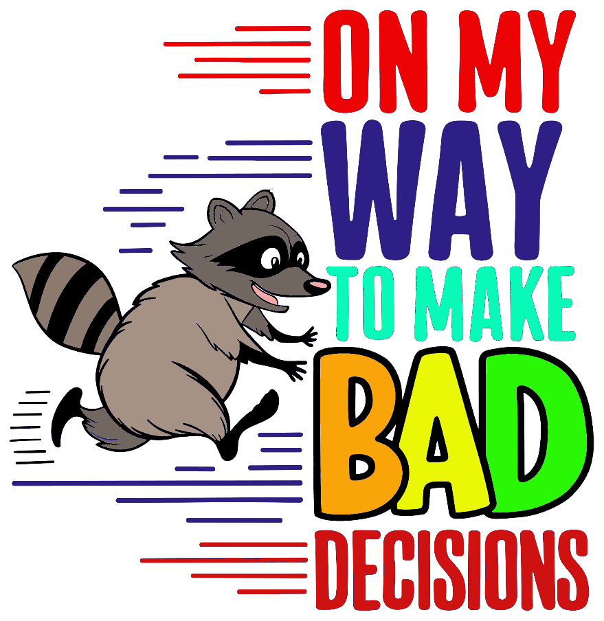 Let's be real, the best stories start with bad decisions. This hilarious t-shirt is for anyone who lives life with a little bit of playful mischief. Featuring a sly raccoon who is definitely up to no good, this tee is the perfect companion for spontaneous road trips, late-night adventures, and making memories you'll be laughing about for years. Made from soft, comfortable cotton, it’s ready for whatever questionable choices you make.